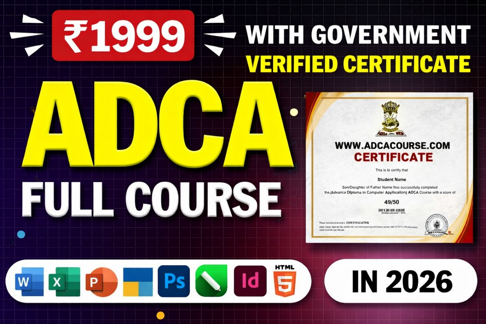 ADCA Course by CourseMe ek complete job-oriented computer diploma program hai jo students ko basic se advanced level tak practical computer knowledge deta hai.